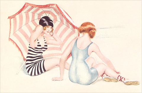 TS-89 Women in Swim Suits with Umbrella - Vintage Image