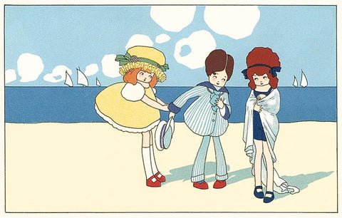 TS-111 Children on Beach Cartoon - Vintage Image