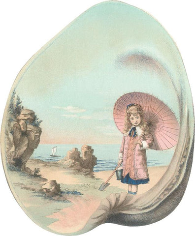 TS-158 Victorian Girl in Seashell - Vintage Image