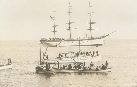 TS-167 Sepia Photo of Ships and Boats - Vintage Image