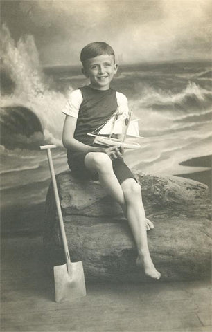 TS-170 Young Boy Photographed at Beach - Vintage Image