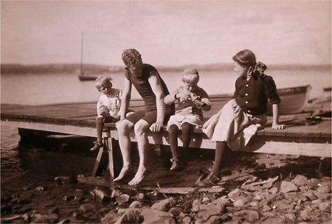 TS-206 Family Sitting on Dock - Vintage Image