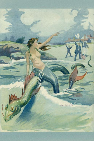 TS-212 Mermaid Riding Sea Serpent - Vintage Image