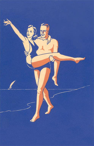 TS-304 Man Carrying Woman in Bathing Suit - Vintage Image