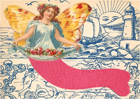 TS-311 Winged Mermaid with Pink Scales - Vintage Image