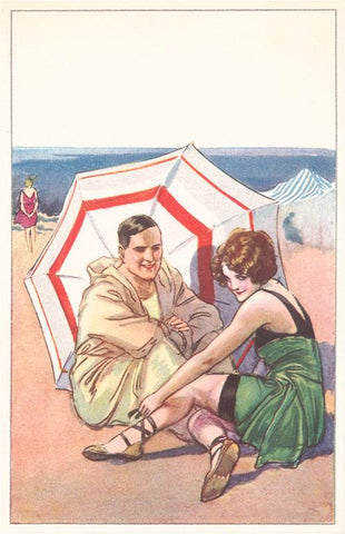 TS-321 Couple on Beach with Umbrella - Vintage Image