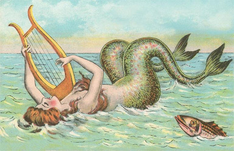 TS-324 Mermaid Playing Lyre - Vintage Image
