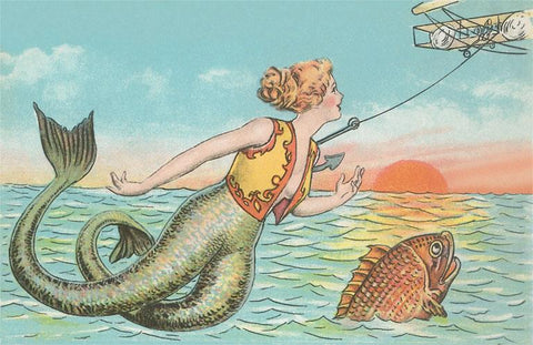 TS-328 Mermaid Hooked by Biplane - Vintage Image