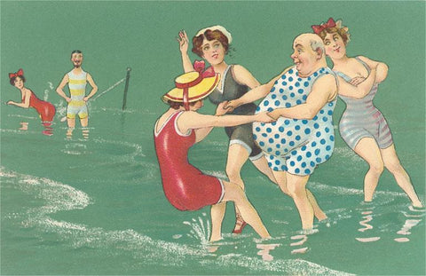 TS-348 Bathers Pulling Fat Man - Vintage Image