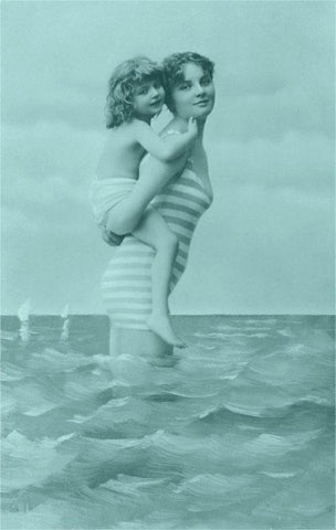 TS-360 Woman and Child Standing in Waves - Vintage Image