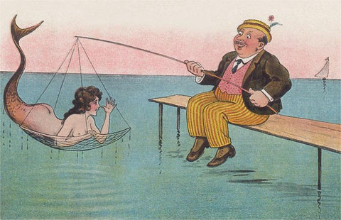 TS-363 Fisherman Catching Mermaid - Vintage Image
