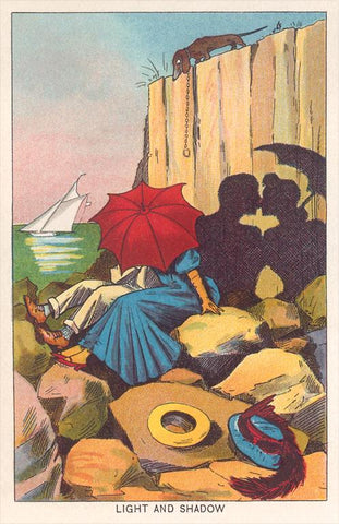 TS-376 Couple Kissing Behind Umbrella - Vintage Image