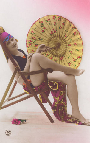 TS-400 Sexy Woman in Beach Chair - Vintage Image