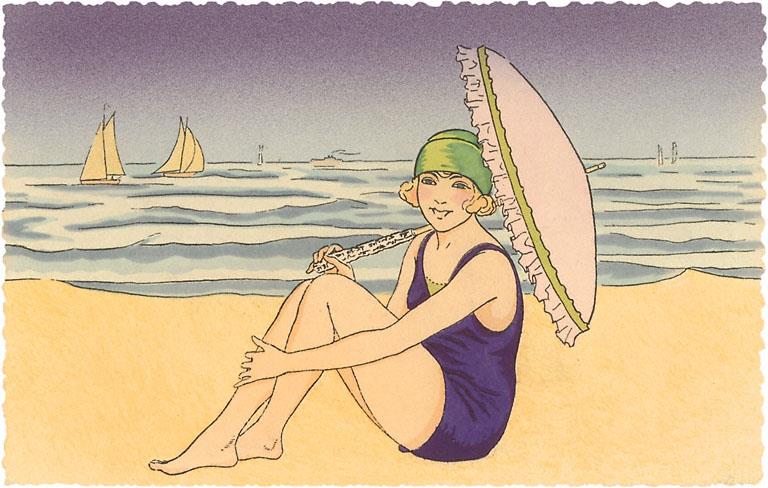 TS-346 Woman on Beach - Vintage Image