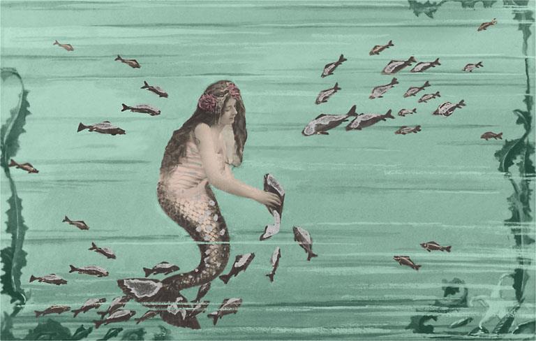 TS-352 Mermaid with Fish - Vintage Image