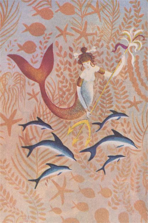 TS-381 Mermaid and Dophins - Vintage Image