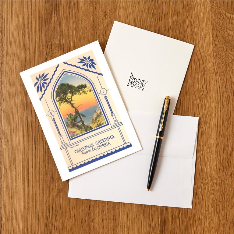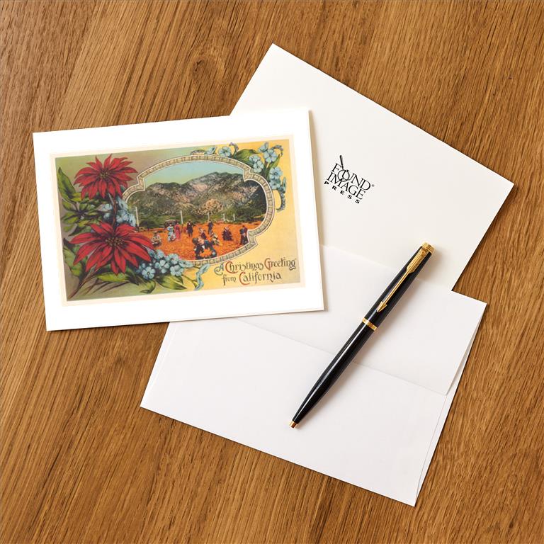Celebrate the festive spirit of California Christmas with Found Image Press's exclusive wholesale collection. Our vintage postcards, greeting cards, desktop calendars, art prints, stickers, and magnets bring the warmth and joy of the holiday season to life. Perfect for retailers wanting to add a nostalgic holiday touch to their offerings, each item is crafted from premium materials for lasting quality. Explore a curated selection that embodies the holiday magic of California.