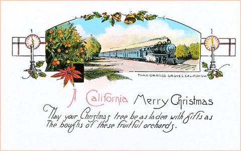 CC-02 Christmas Greetings, Train through Orange Grove - Vintage Image