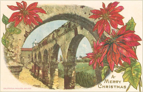 CC-06 Mission Arches, Pointsettias - Vintage Image