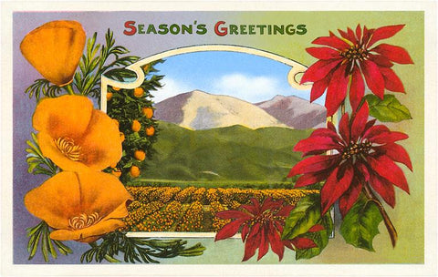 CC-65 Poppies, Poinsettias and Orange Groves - Vintage Image