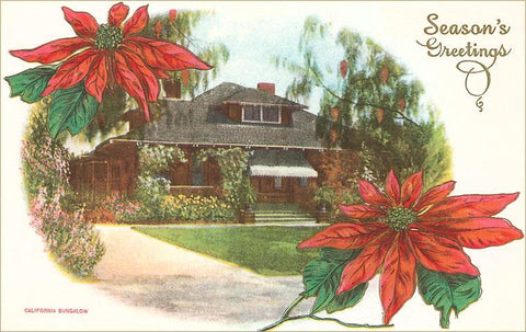 CC-110 Bungalow and Poinsettias - Vintage Image