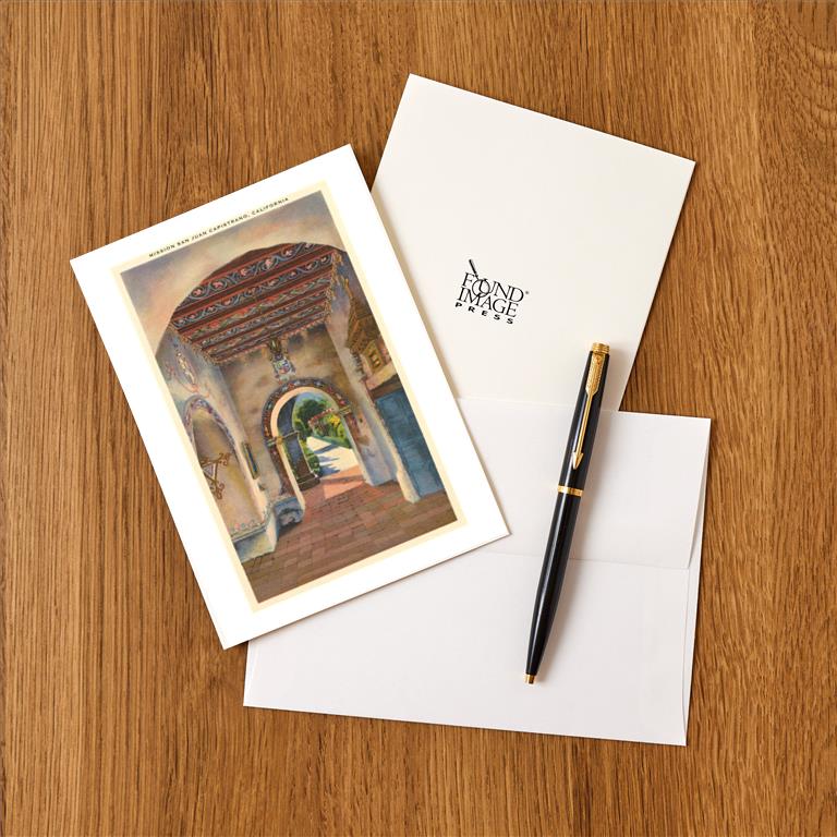 Discover the historical significance of California Missions with Found Image Press's exclusive wholesale collection. Our vintage postcards, greeting cards, desktop calendars, art prints, stickers, and magnets capture the architectural beauty and cultural heritage of the missions. Perfect for retailers looking to add a touch of history to their offerings, each item is crafted with premium materials for lasting quality. Explore a curated selection that embodies the spirit and history of the California Missions.