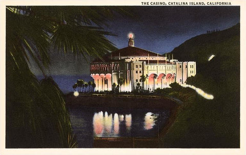 CA-58 Catalina Casino at Night, California - Vintage Image