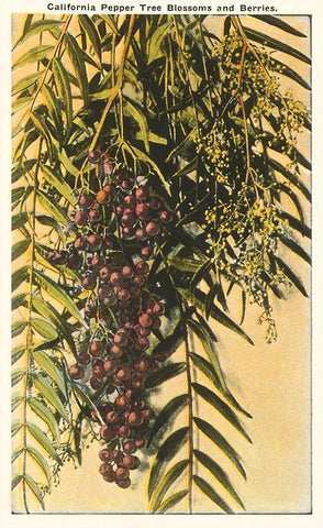 CA-122 California Pepper Blossoms and Berries - Vintage Image