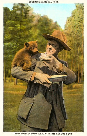 CA-230 Bear Cub and Ranger, Yosemite, California - Vintage Image