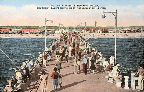 CA-261 Fishing, Pier at Newport Beach, California - Vintage Image
