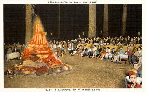 CA-292 Evening Campfire, Sequoia, California - Vintage Image