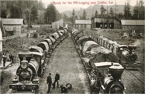 CA-299 Mill-Logging, Locomotives, Eureka, California - Vintage Image
