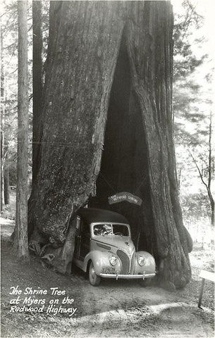 CA-642 Car Driving through Redwood - Vintage Image