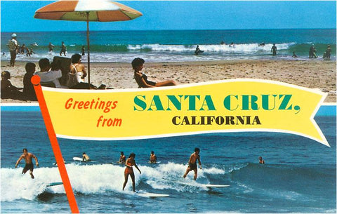 CA-857 Beach and Surfing Greetings from Santa Cruz - Vintage Image