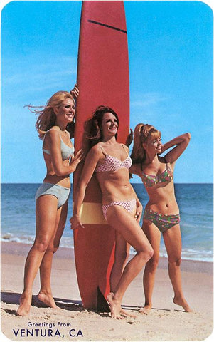 CA-903 Three Woman Surfers in Bikinis Greetings from Ventura - Vintage Image
