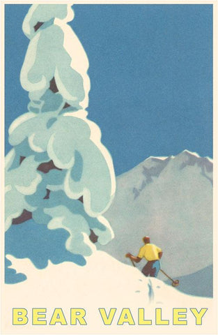 CA-923 Big Snowy Pine Tree and Skier, Bear Valley - Vintage Image