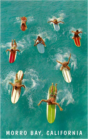 CA-1013 Surfers, Morro Bay, California - Vintage Image