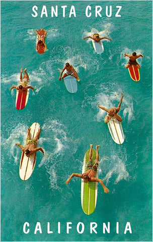 CA-1038 Surfers from Above, Santa Cruz, California - Vintage Image