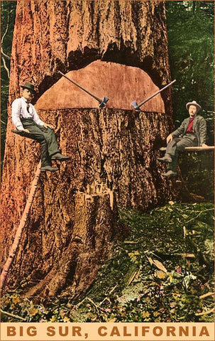 CA-1109 Chopping Down a Redwood, Big Sur, California - Vintage Image