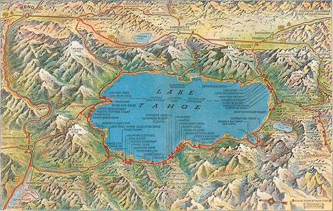 CA-1213 Old Map of Lake Tahoe Area - Vintage Image