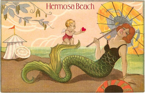 CA-1230 Hermosa Beach, Mermaid and Cupid - Vintage Image