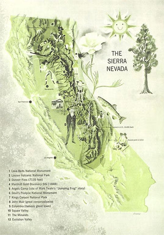 CA-1403 Map of the Sierra Nevada - Vintage Image