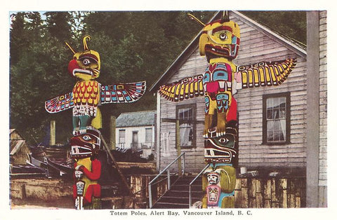 CN-13 Totem Poles, Vancouver Island, British Columbia, Canada - Vintage Image