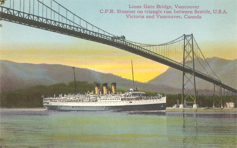 CN-24 Lions Gate Bridge, Vancouver, British Columbia, Canada - Vintage Image