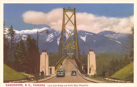 CN-43 Lions Gate Bridge, Vancouver, British Columbia, Canada - Vintage Image