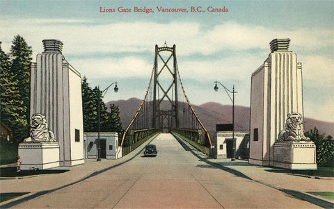 CN-62 Lions Gate Bridge, Vancouver, British Columbia, Canada - Vintage Image