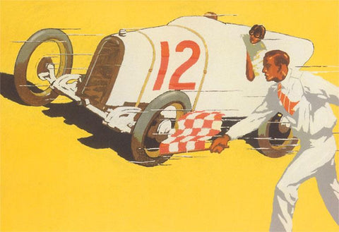 KE-112 Checkered Flag, Race Car - Vintage Image