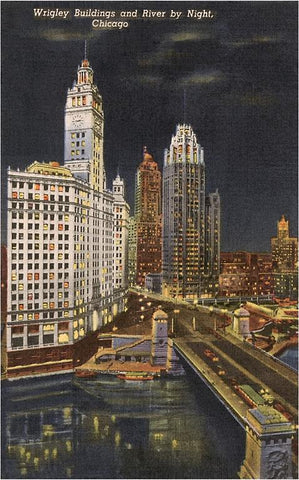 CH-48 Wrigley Building at Night, Chicago, Illinois - Vintage Image