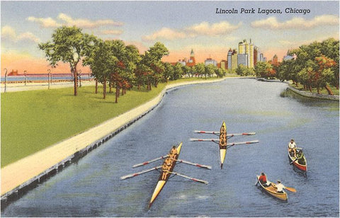 CH-63 Sculls on Lincoln Park Lagoon, Chicago, Illinois - Vintage Image