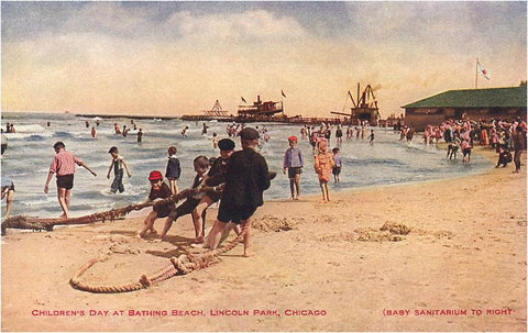 CH-109 Children at Beach, Lincoln Park, Chicago, Illinois - Vintage Image